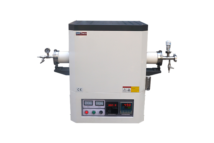 爐管兩端裝有不銹鋼金屬法蘭,配套高溫 PTFE 墊圈,可在真空下進行工作, 真空度≤5pa(旋片式真空泵)